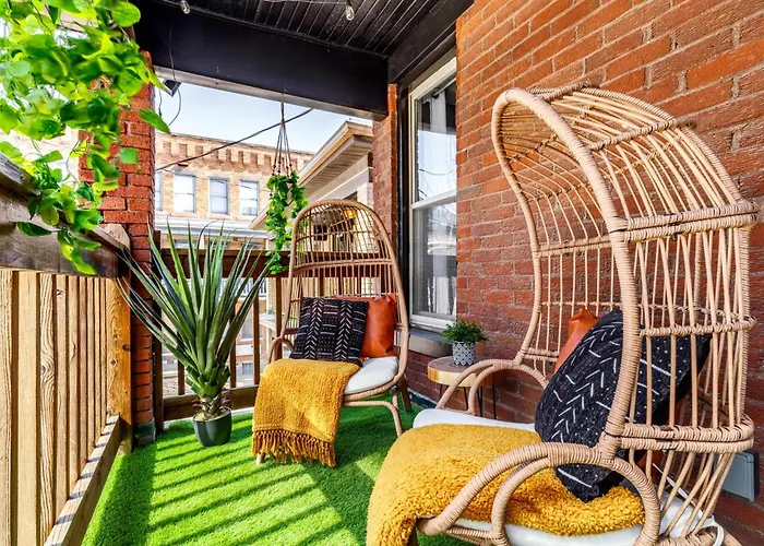 Situata a circa 25 minuti a piedi dall'Ohio Expo Center & State Fair, la Jungle House Columbus Short North Downtown Free Parking - Steps To Convention Center & Nationwide Arena - 2Br Luxury Home - Sleeps 8 - Over 5,800 Five Star Stays invita gli ospiti a rilassarsi su una terrazza.